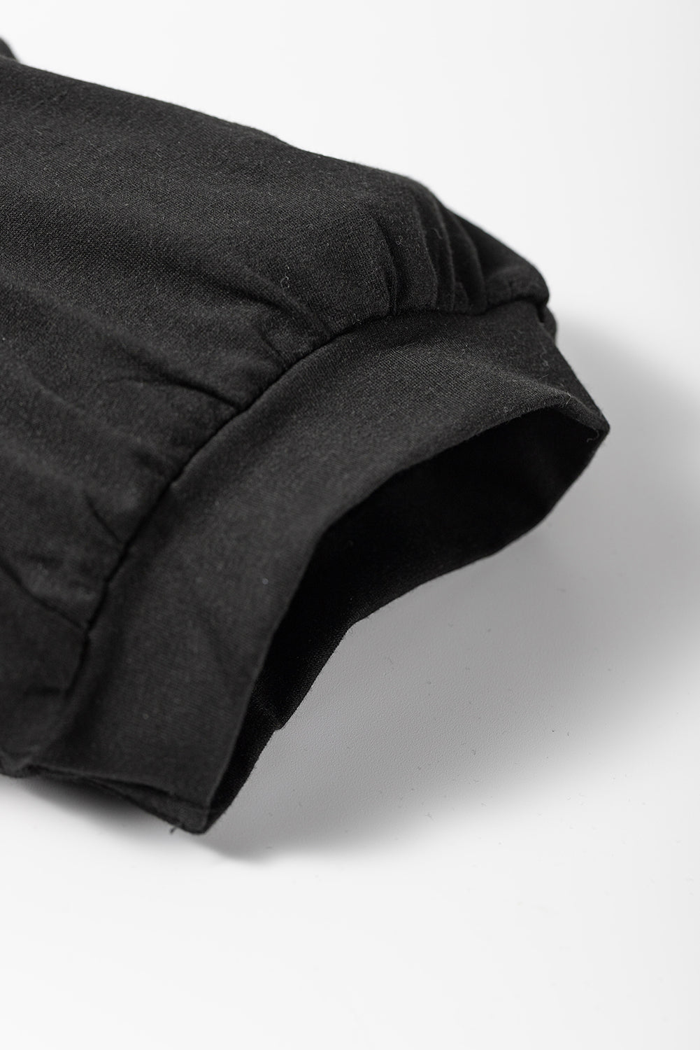 Black Notched Neck Pleated Puff Sleeve Shift T-shirt Dress
