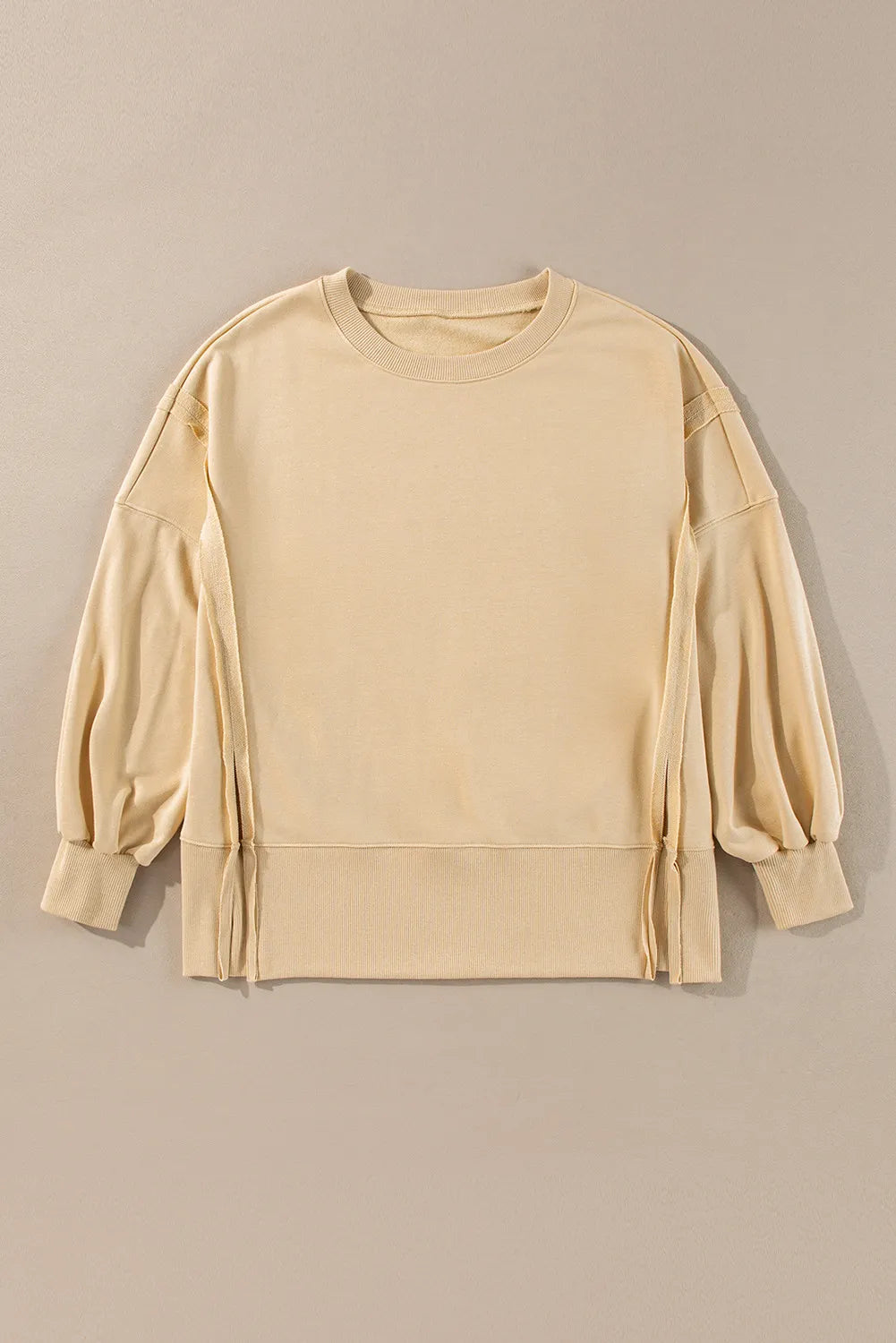 Stay cool and comfortable in our Exposed Seam Sweatshirt! Featuring exposed stitching and a relaxed fit, this sweatshirt is perfect for everyday wear. With its lightweight fabric and trendy design, you'll never want to take it off. Perfect for the fashion-forward and the laid-back.