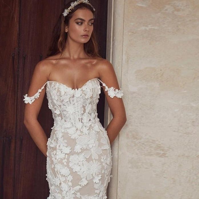 Lace Mermaid Wedding Dress | Off Shoulder Vintage Bridal Gown
