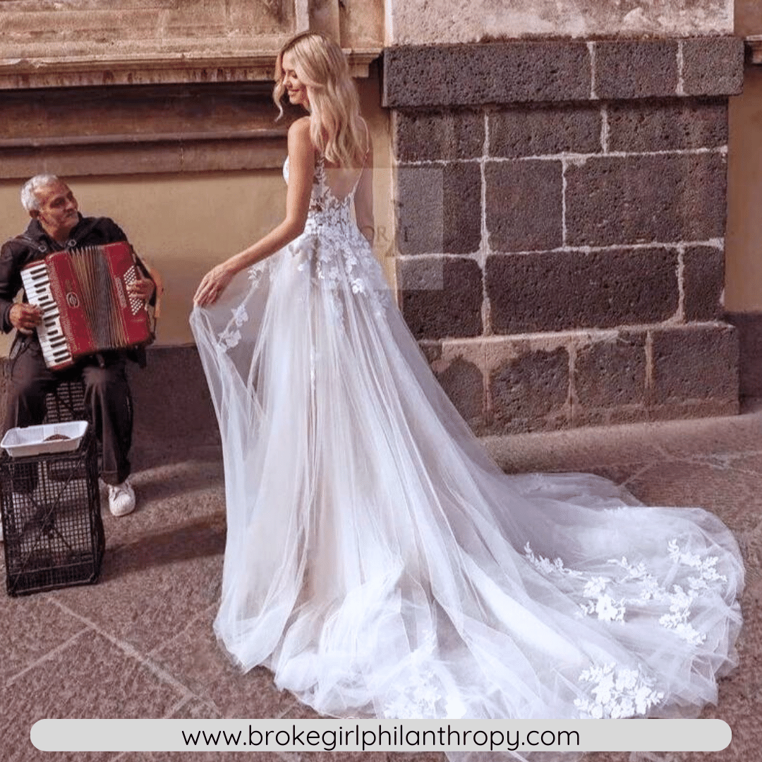 Fall in love with the timeless charm of our Vintage Lace V Neck Beach Wedding Dress.