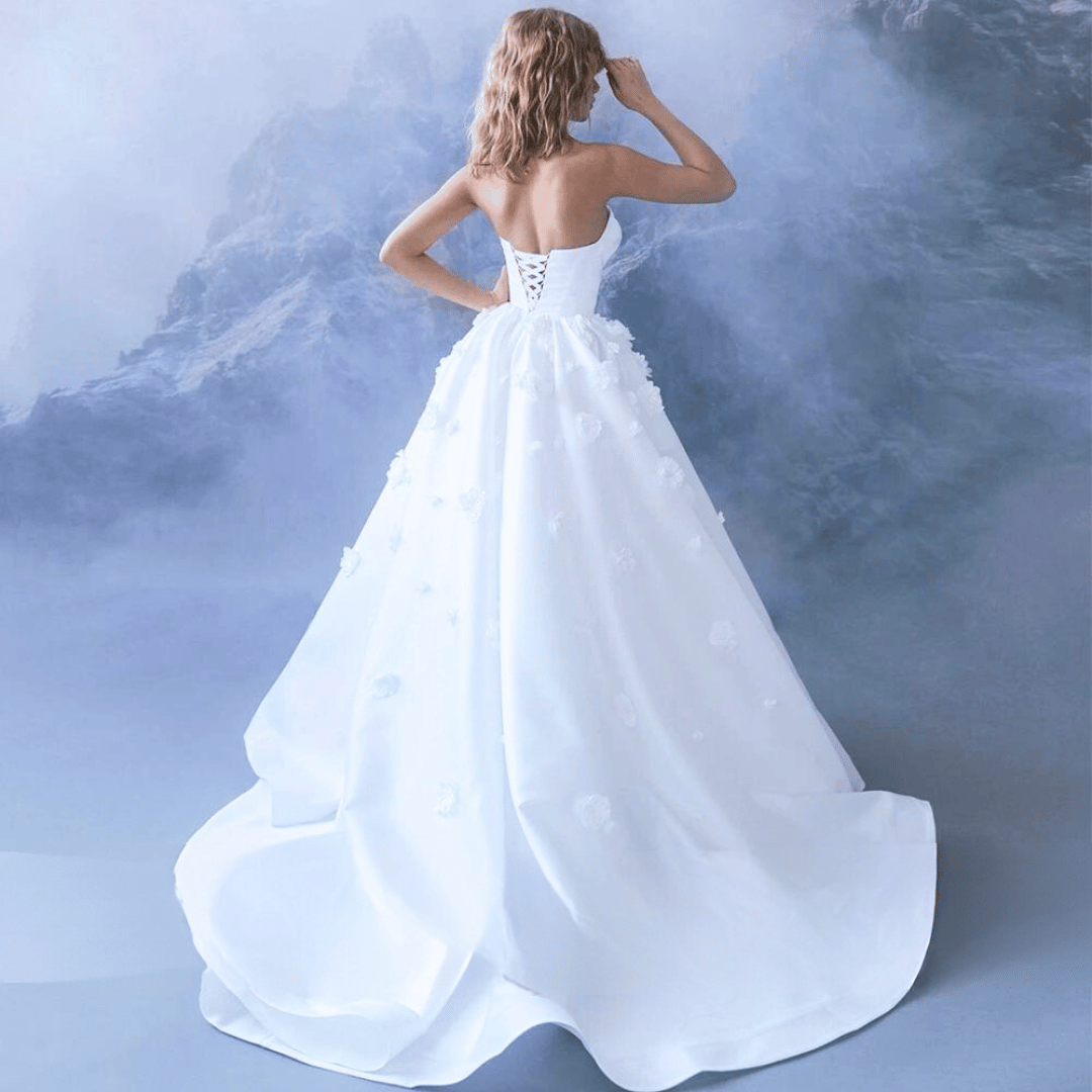 Embrace the magic of your wedding day in our Vintage Strapless 3D Flowers Wedding Dress. Say "I do" in style and create unforgettable memories that will last a lifetime.