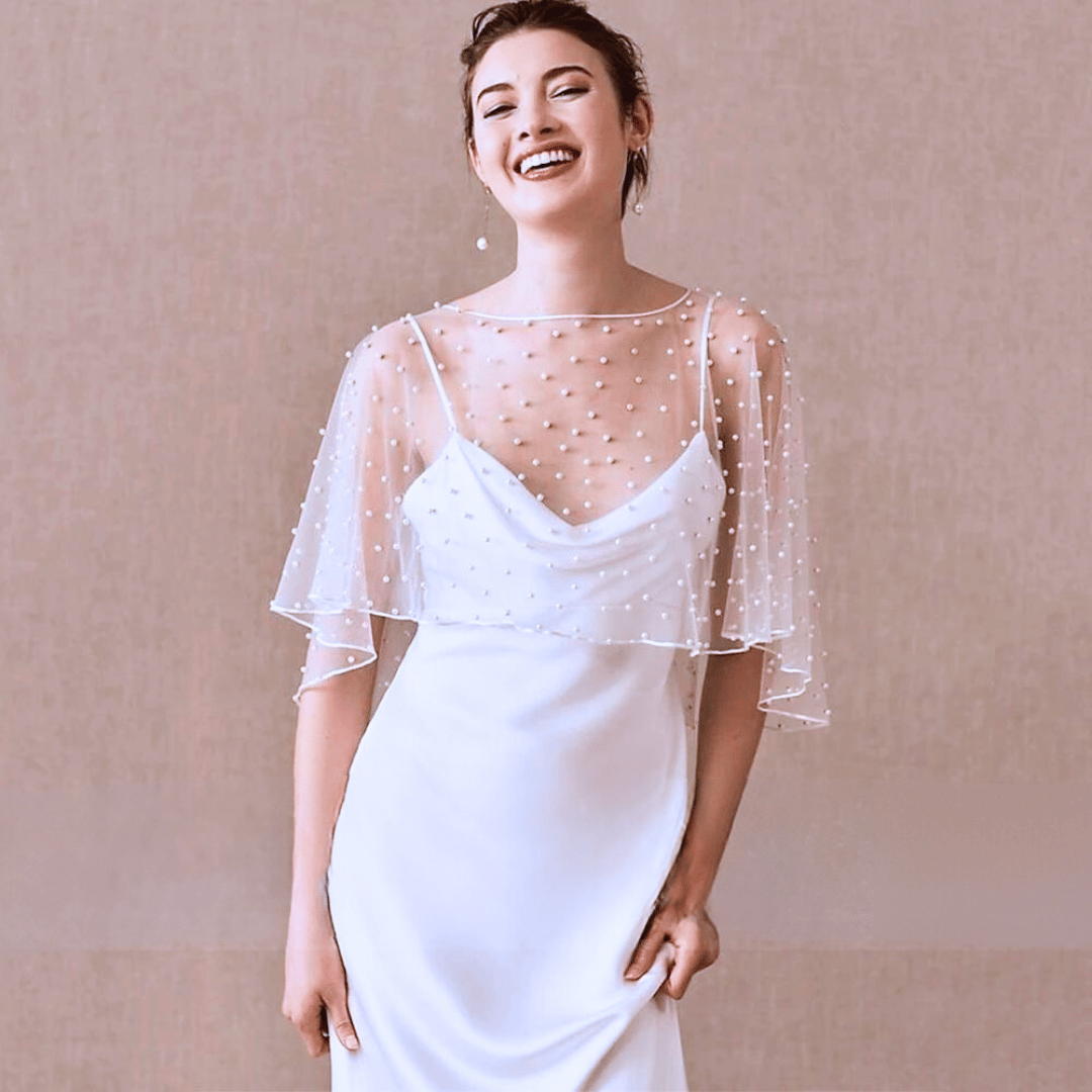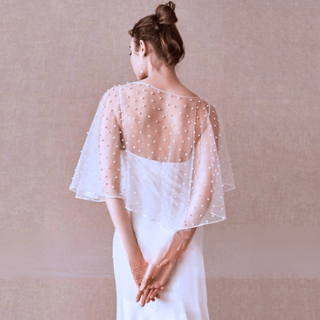 - The intricate pearl detailing and illusion tulle cape jacket add a touch of ethereal beauty, making you the epitome of sophistication on your special day 🌟