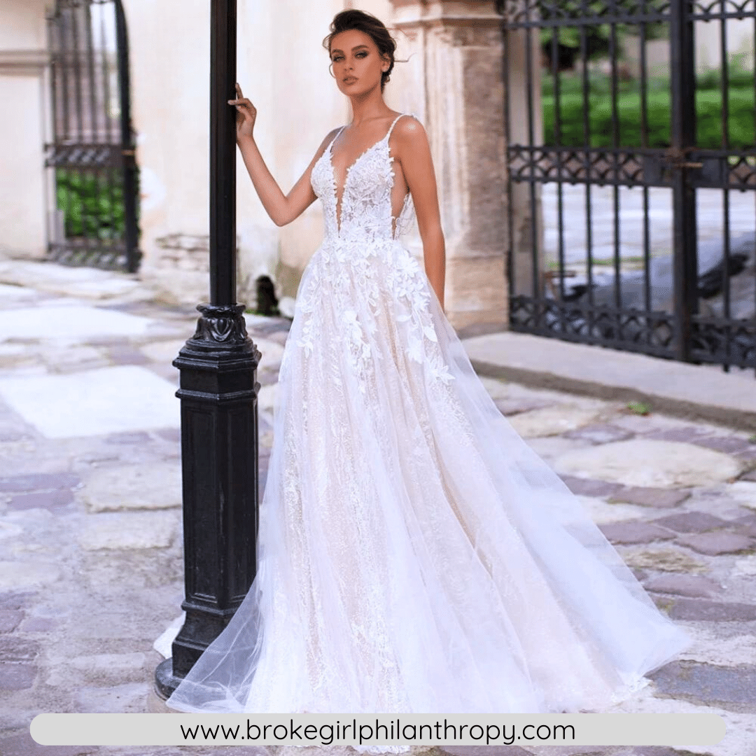 • Exquisite lace detailing with appliques, beading, and pearls for a truly romantic and vintage-inspired look